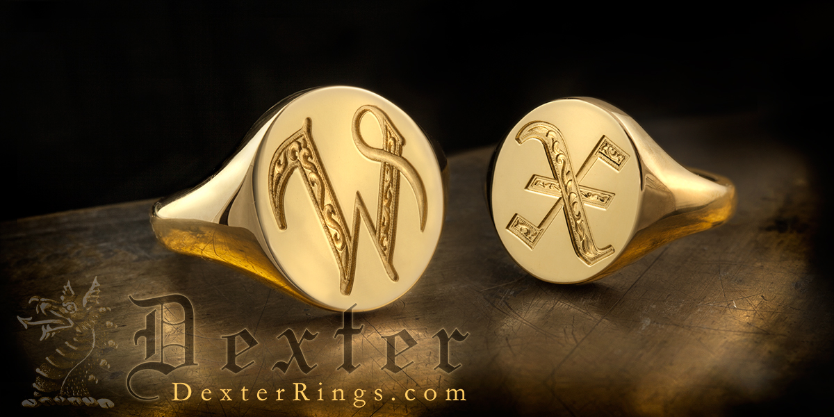 Signet rings engraved with our range of 'off-the-shelf' Ornate Single Letters. We have created these individual initial designs, based on an old English font with decorative sculptural detail. Ideal for your loved one; man or woman. Your initial, their initial or another meaningful letter. Excellent idea for a gift.